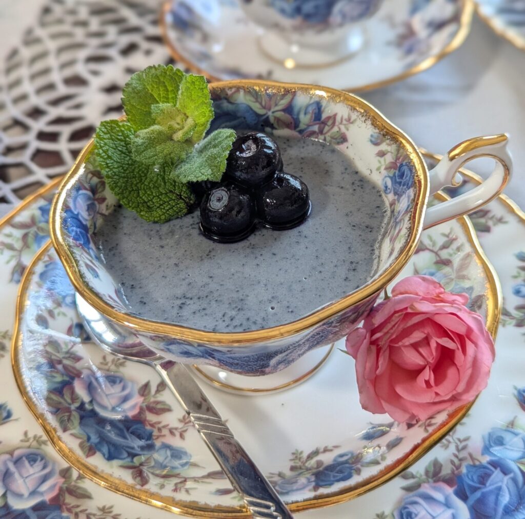 8.地味なスイーツなので、冷凍ブルーベリーとミントを乗せて少し華やかにしました。