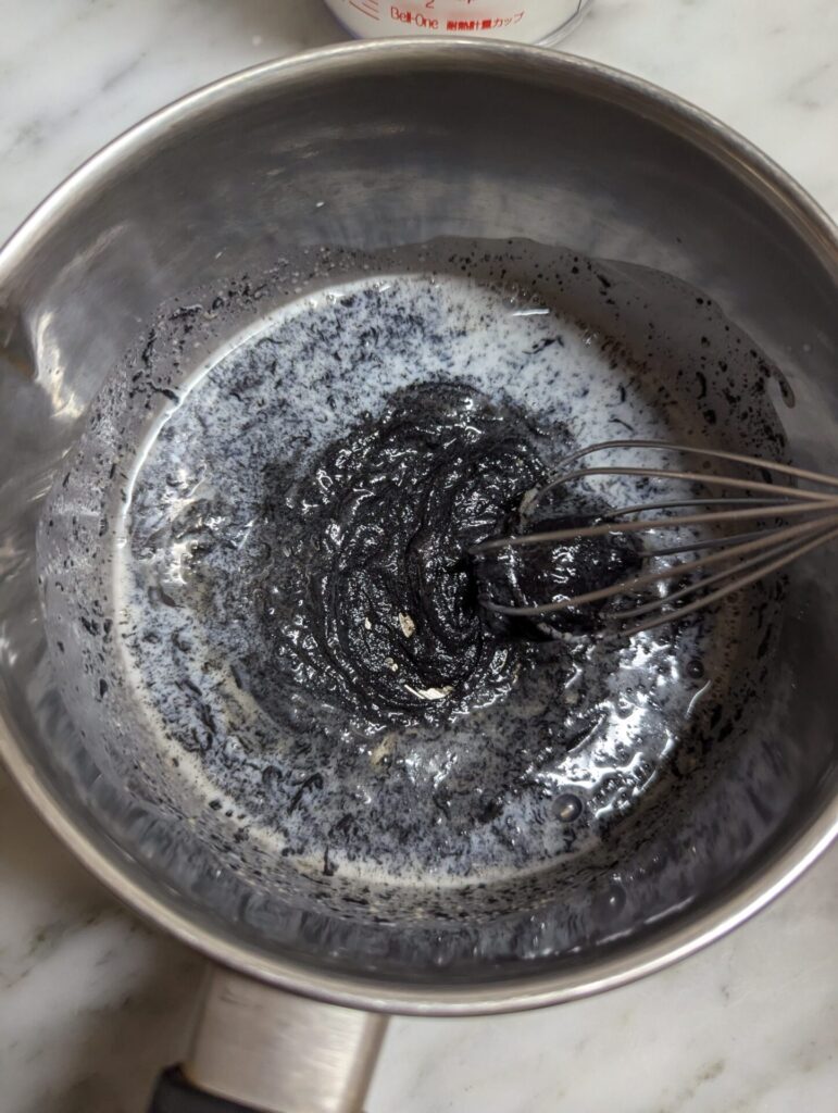 最初に少量の牛乳で混ぜておくと全体が混ざりやすいです。