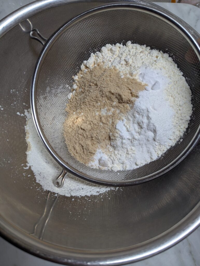※抹茶味の時はここへ一緒に入れて振るいます。(抹茶大さじ1)