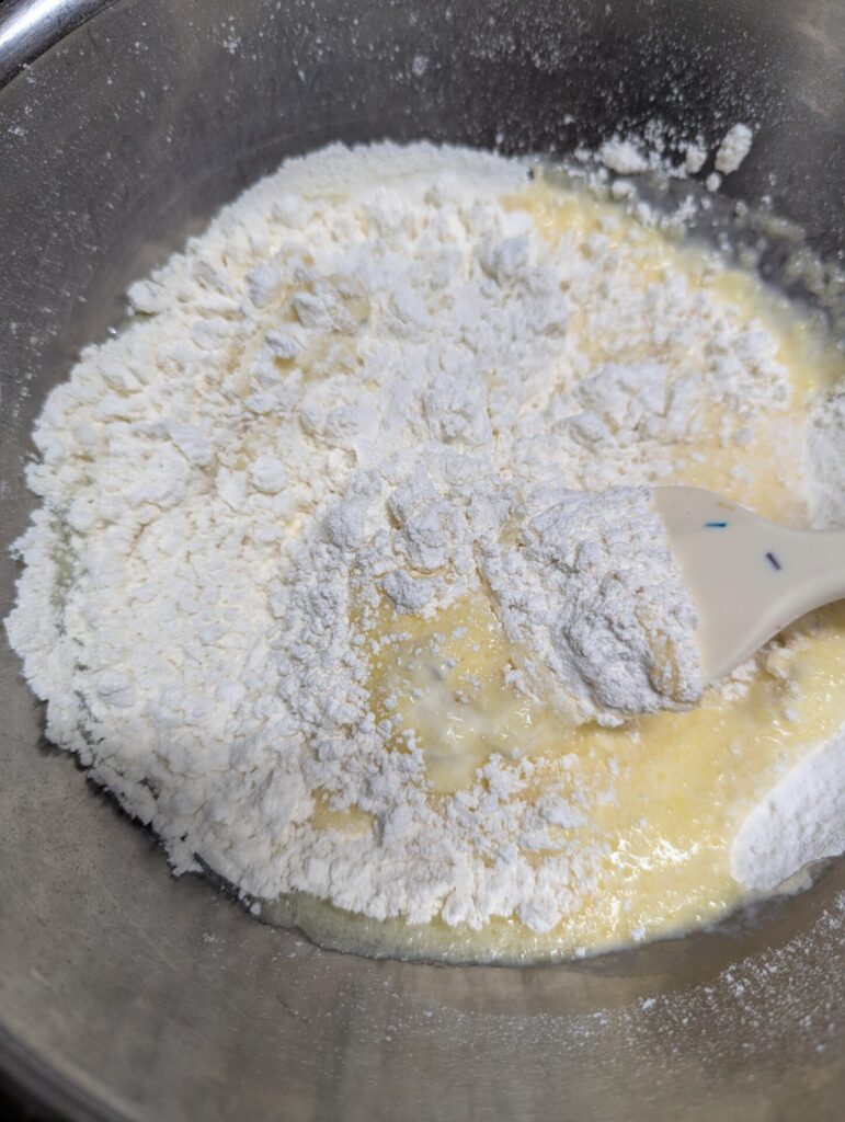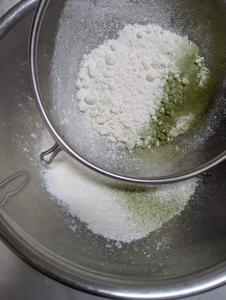抹茶味の時は粉類と一緒に抹茶(大さじ1)を入れて振るいます。他は同じ作業です。
