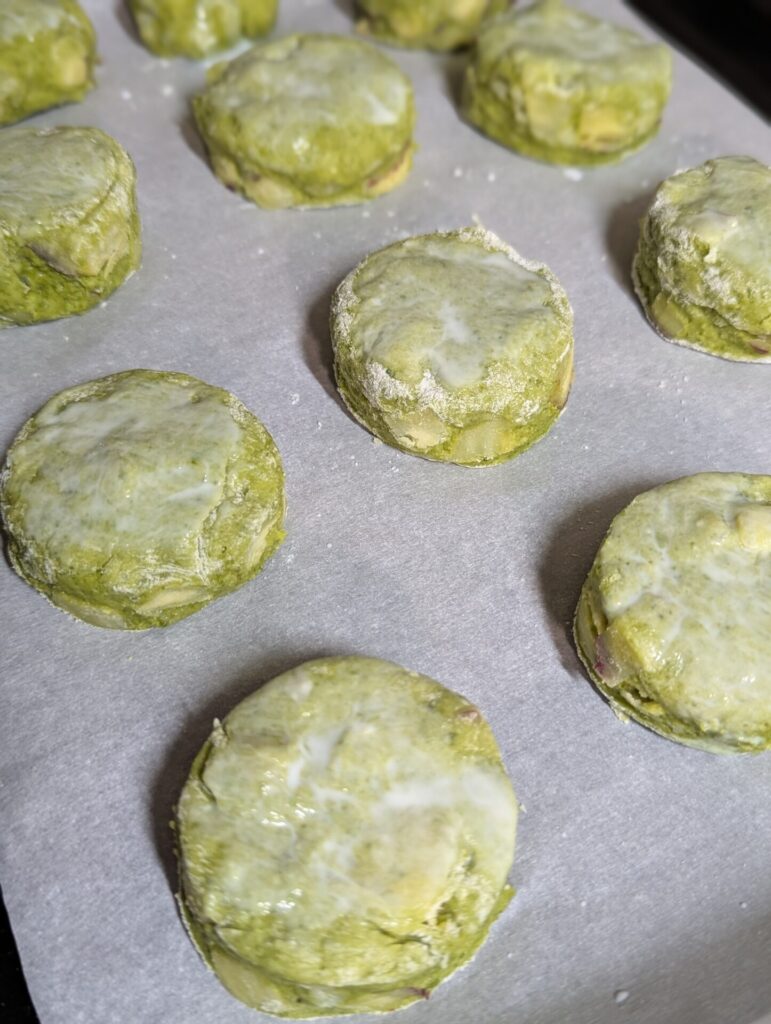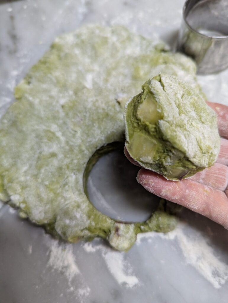 *型に強力粉(分量外)を付けると生地をスパッとくり抜くことができます。