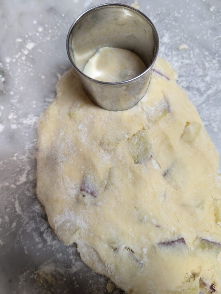 2.5㎝くらいの厚さに押し広げて型抜きします。