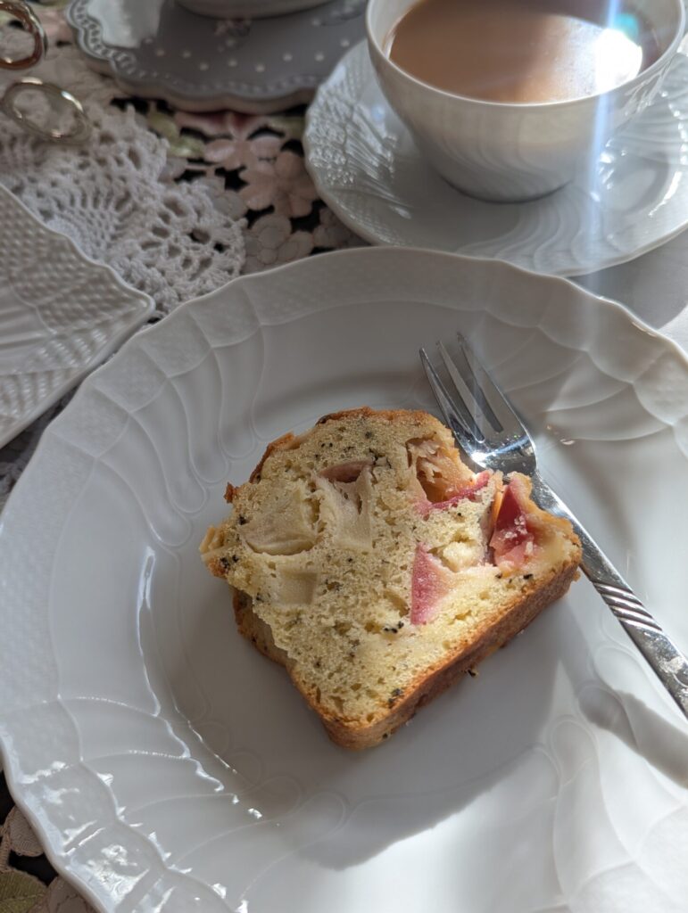 ほんのりピンク色に焼けたりんごが甘酸っぱく、アールグレイと良く合います。
