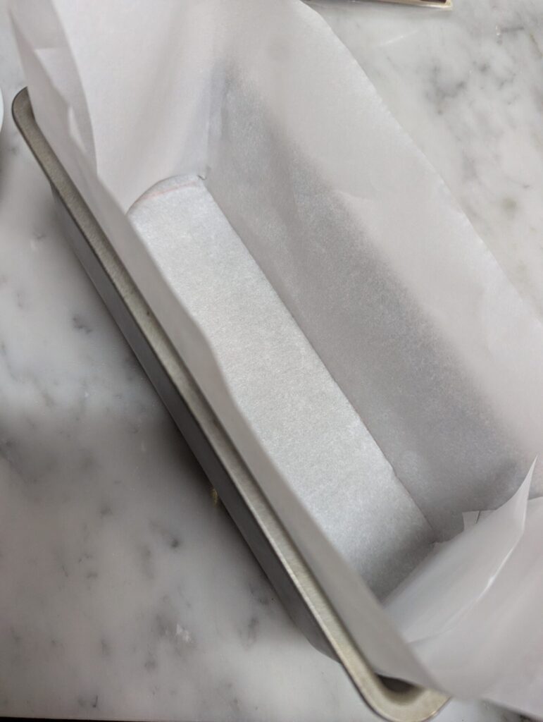 パウンド型に紙を敷きます。今回はオーブンペーパーを敷きました。
