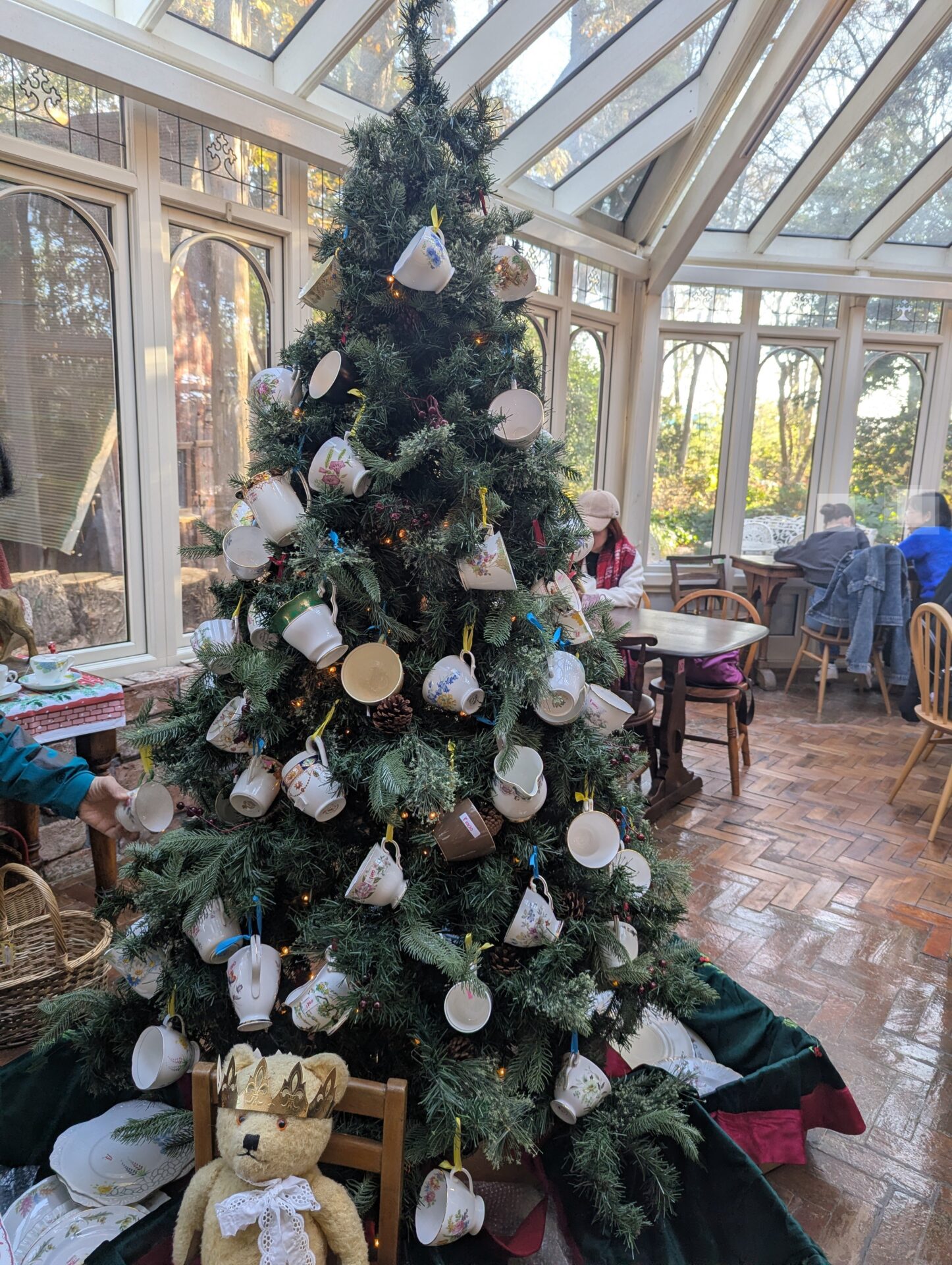 併設のティールームはコンサバトリー、直ぐに大きなクリスマスツリーが目に飛び込んできます~