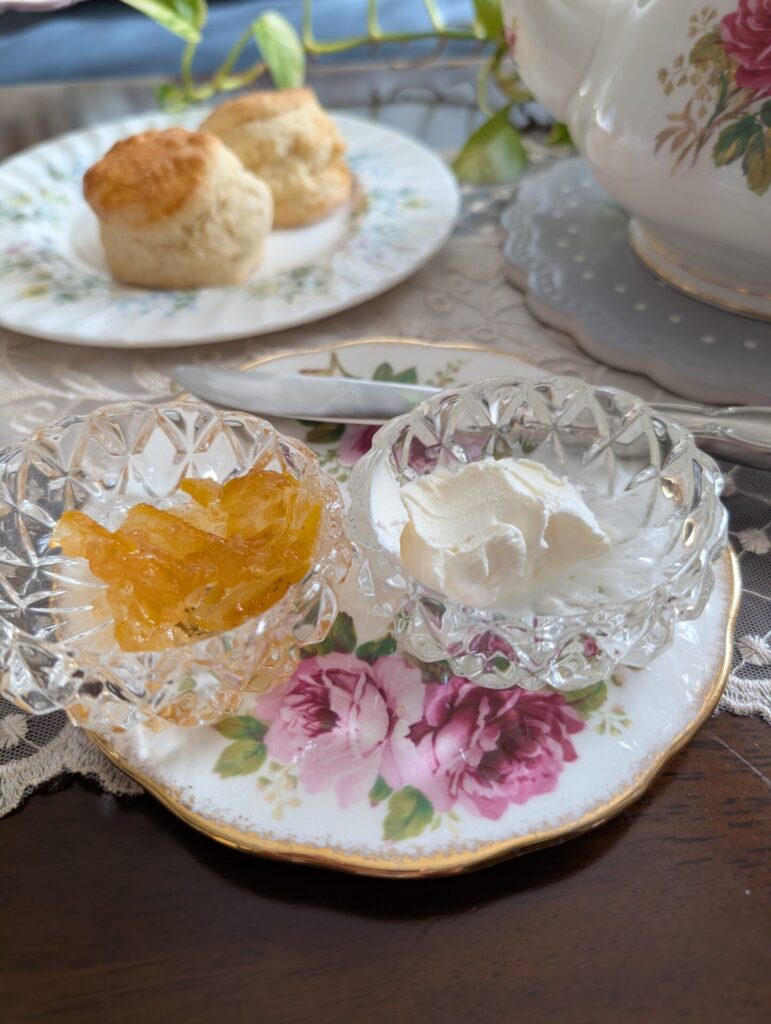 紅茶のお供にスコーンを焼きました。手作りマーマレードとサワークリームで頂きます…