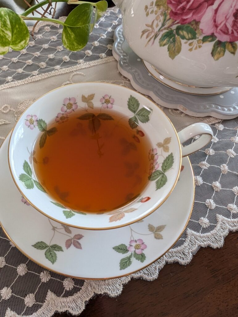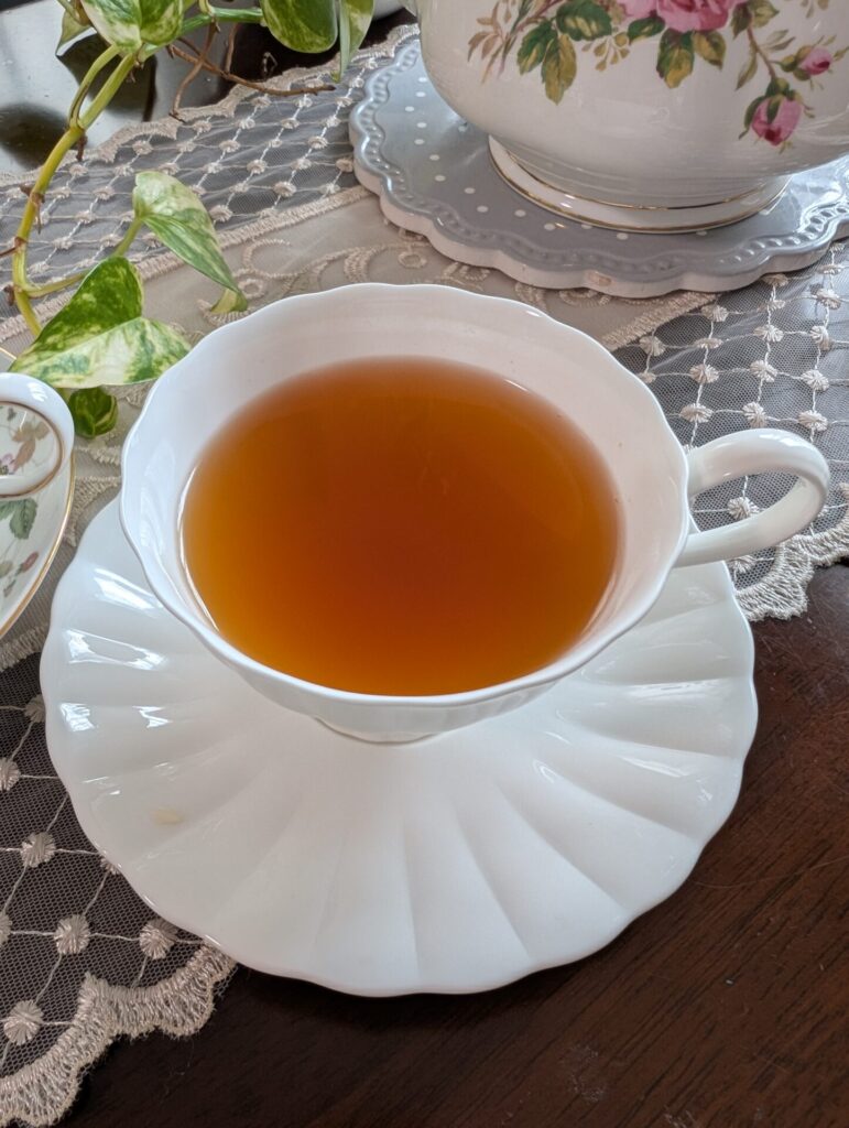 巻の多いりんごの方も取り出しました。紅茶の色もティーカップも美しく、しっかり甘みとりんごの風味が付いています。