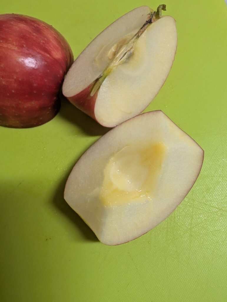 取り出したりんごは、エキスが抜け出ているので食べるとがっかりするお味です。
