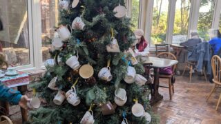 お出掛け佐倉マナーハウス~暖炉に火が入る季節に 暖炉に火が入る冬枯れの季節に、佐倉マナーハウスを訪ねてみました。森の中のアンティークショップはクリスマスツリーが飾られ、オーナメントはヴィンテージのティーカップです、季節のケーキ「クランベリーケーキ」を頂きました。 2025.12.25お出掛け